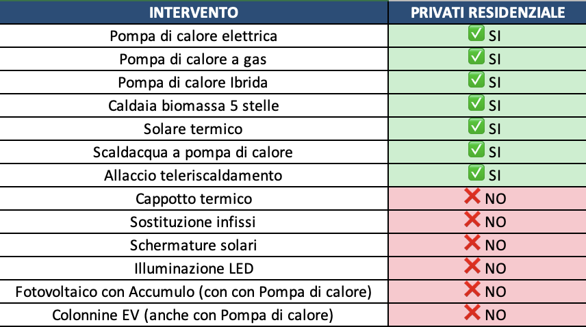 La seguente tabella può fornirti un quadro complessivo e chiaro di tutti gli interventi ammessi: